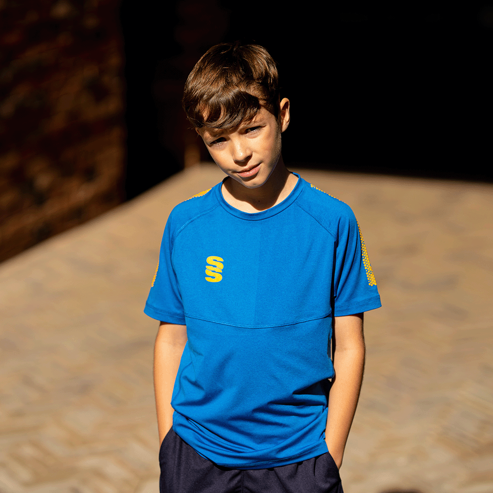 The Dual Gym T-shirt is made of high performance polyester marl fabric, with a contoured underarm side panel in breathable interlock fabric. The crew neck collar is made with modern flatlock stitching. It comes with an option for contrast colour 'dual' graphic print on both shoulders and choice of Surridge SS Logo situated on the right chest. It's super stretchy and is a regular fit, but can be worn one size down for extra fitting around a more athletic build.